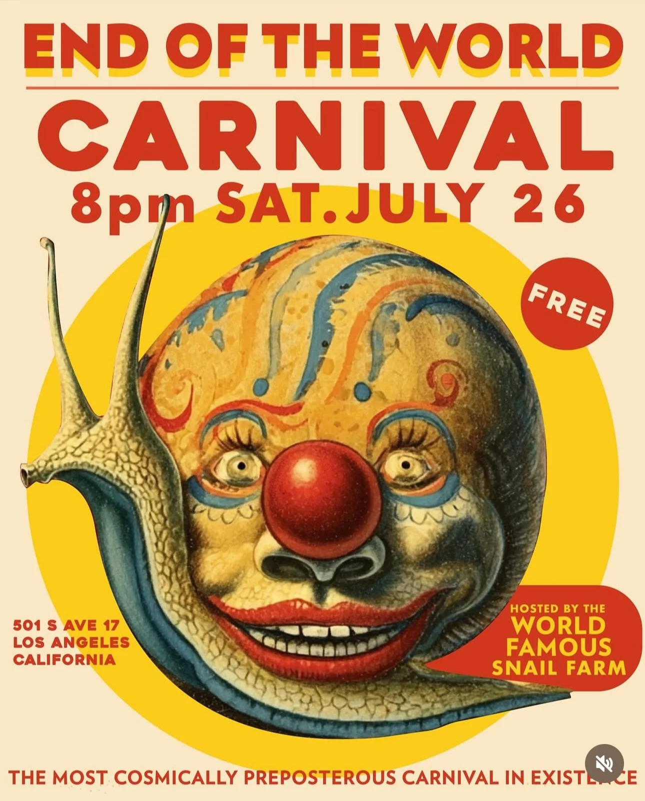 Back to All Events Carnival Freakshow at The Snail Farm Saturday, July 26, 2025 8:00 PM 11:59 PM Google Calendar ICS Come to the Snail Farm at 501 S. Ave 17 for a night of wild performances amidst a haze of Carnival magic. Esmerelda will do sing and dance. Don’t miss it or you’ll miss it!